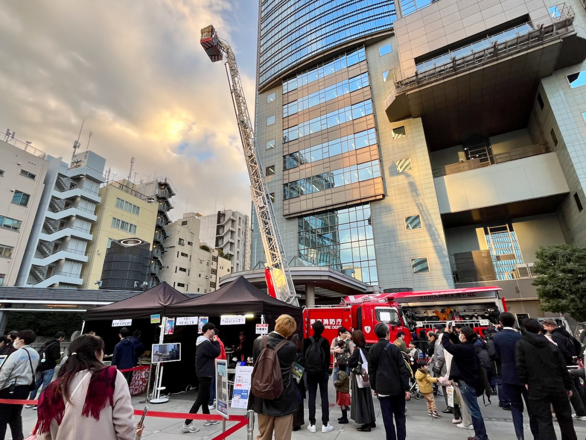 同じ11月22日・23日には、「赤坂サカス防災フェス2025」が赤坂サカス広場と周辺エリアでも開催されました。主催はTBSスパークルで、「楽しく学べる防災」をテーマに一昨年初開催したイベントです。はしご車やVR防災体験車、防災テント、ワークショップのほか、「レスキューキッチンカー」での炊き出しメニュー販売などを用意し、家族連れを中心ににぎわいました。