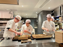 同ホテル開業50周年記念事業の一環として企画した同商品。ホテルの外観を描いた専用のギフトボックスには、フランボワーズとバニラ風味のマカロン生地にラズベリージャムとバタークリームをサンドした3個の紅白マカロンを並べる。価格は1,200円。