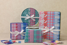ラインアップは、レトロデザインのパッケージにハート形の煎餅などを詰め合わせた「レトロバッグ」(540円)や「レトロスクエアボックス」(1,080円)、「レトロサークルボックス」(1,620円)、「レトロ缶」(2,160円)などをそろえた。