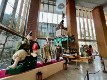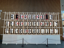 アトリウム2F展示スペースに展示中の各町会の半纏(はんてん)