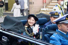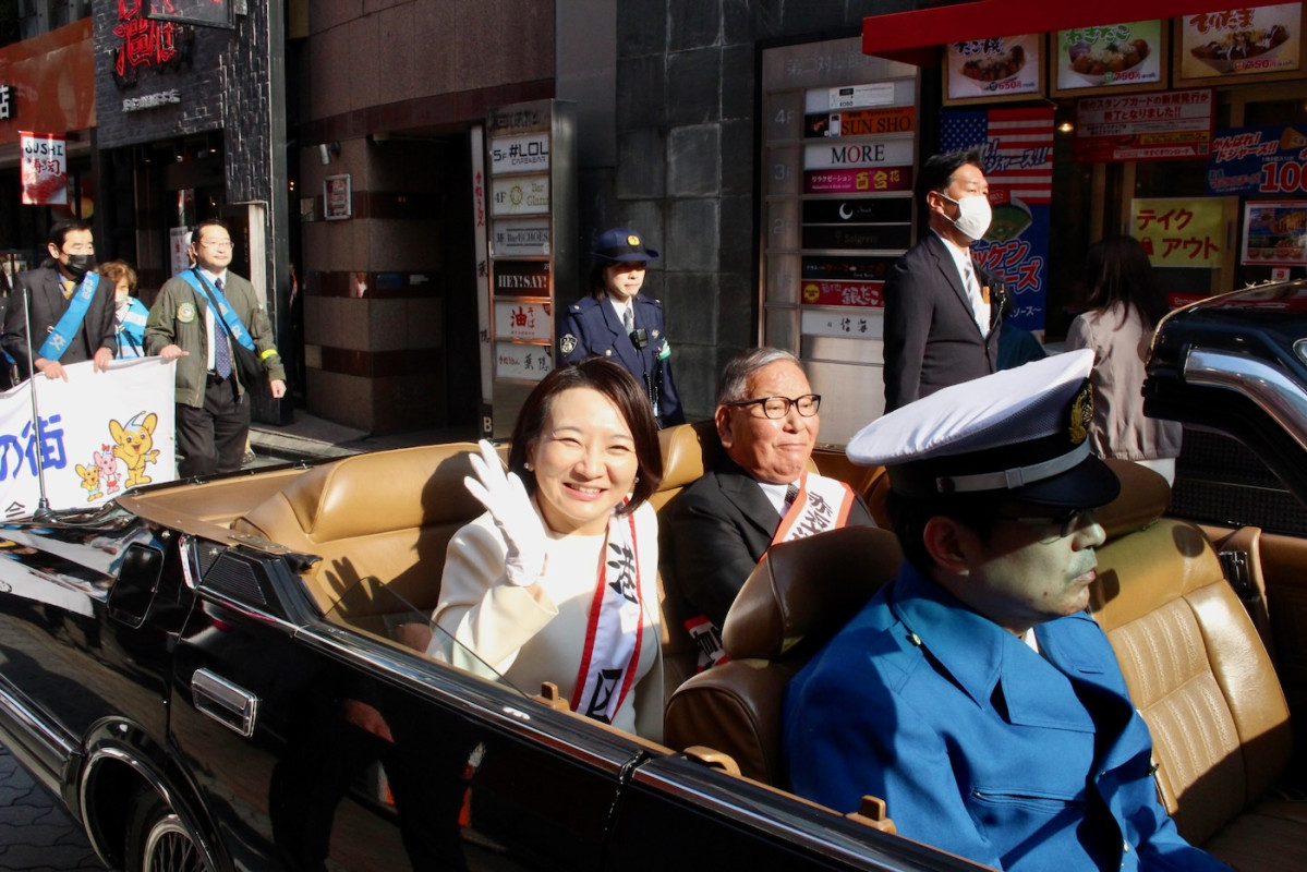 交通安全パレードに参加した清家あい港区長