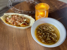「aLuca」の豚汁と「銀座ふくよし 赤坂店」のたこ焼き
