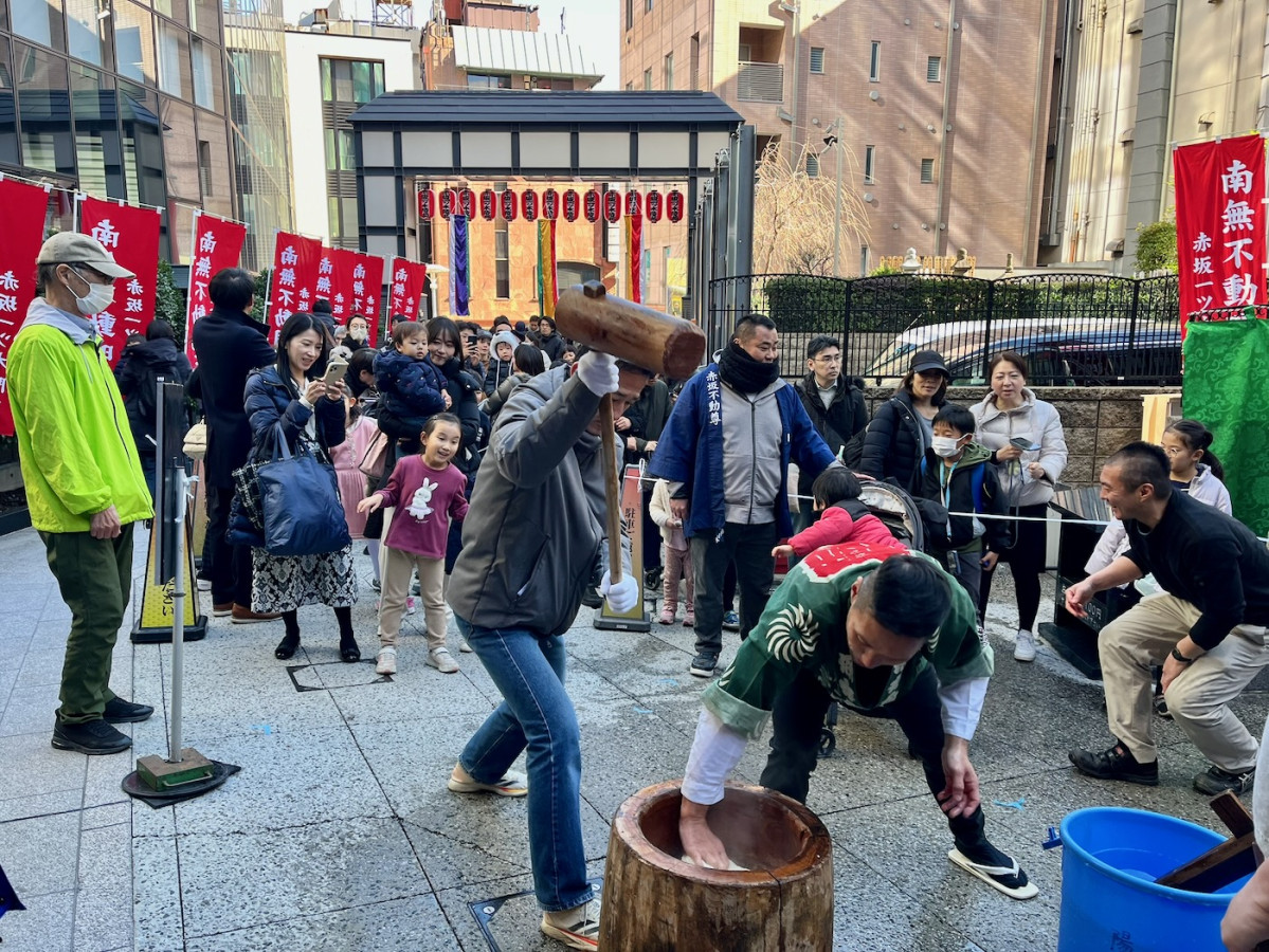 「第8回 書初(かきぞ)め&おもちつき」が1月4日、「赤坂不動尊 威徳寺」(港区赤坂4)で開催された。
