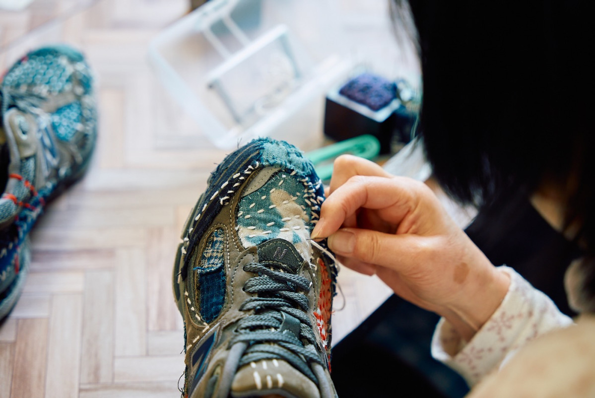 「サシコギャルズ」が手作業して仕上げた刺し子スニーカー