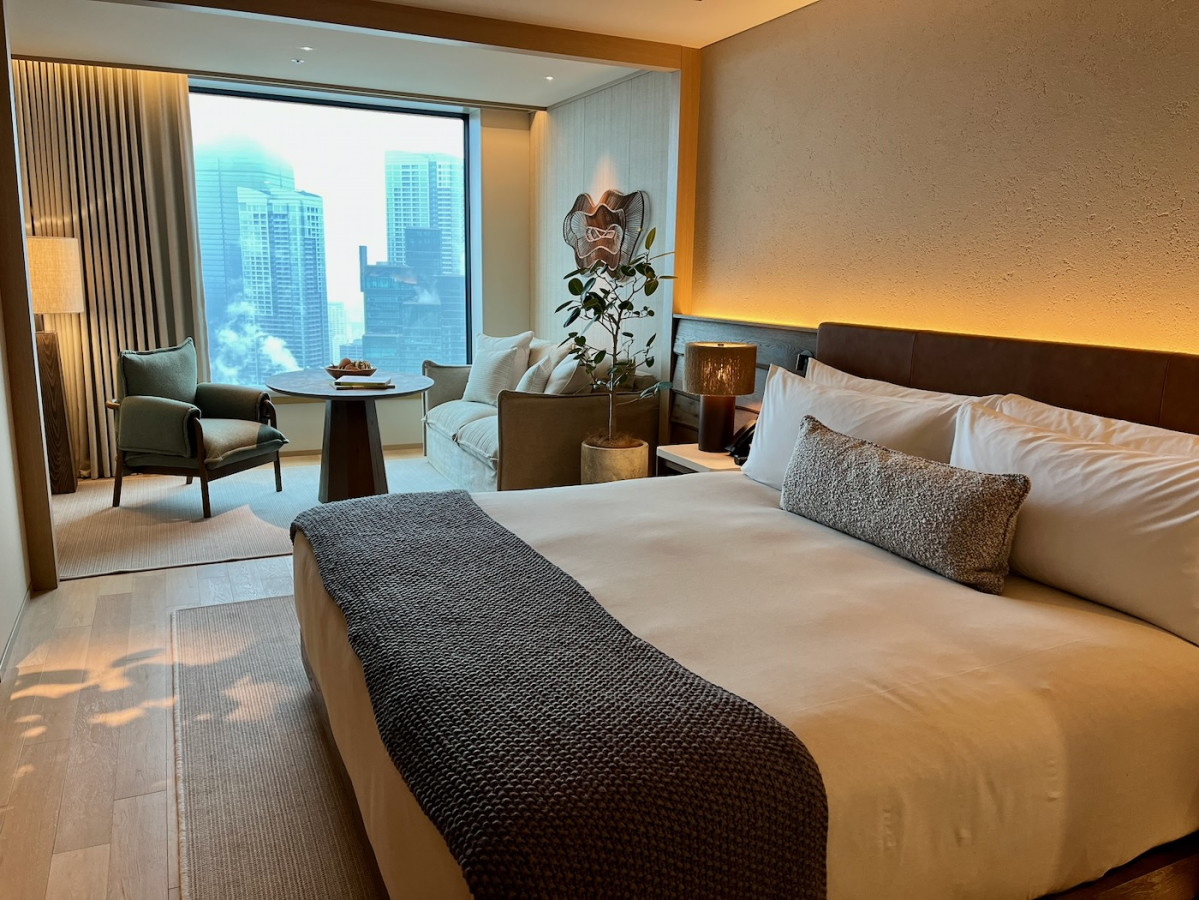 ホテル「1 Hotel Tokyo(ワン・ホテル・トウキョウ)」(港区赤坂2、TEL 03-6441-3040)が現在、岩手県大槌町を拠点とする刺し子職人グループ「SASHIKO GALS(サシコギャルズ)」とコラボして刺し子スニーカーを展示している。
