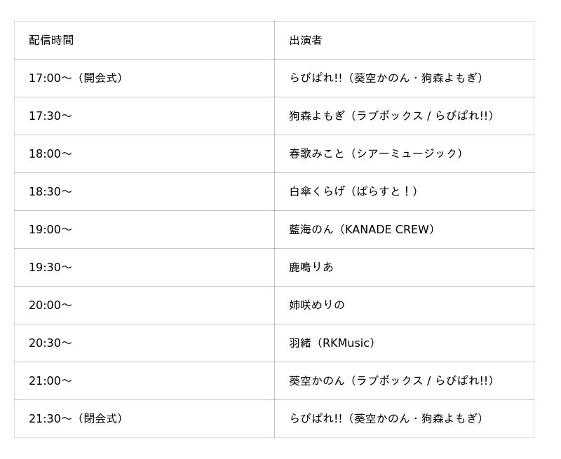 『らびぱれ!!』が贈る「ぶいのね歌枠リレー」には、今注目のグループから個性派まで、多彩なメンバーがラインナップ。事務所の枠を飛び越え、それぞれの「歌声(ねいろ)」が重なり合うこの5時間は、リスナーの皆さんに新しい推しとの出会いと、心を震わせる音楽体験を約束します。