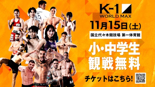 K-1を主催する株式会社M-1スポーツメディア(本社:東京都渋谷区、代表取締役社長:大木 知葉)は、来る11月15日(土)に国立代々木競技場 第一体育館で開催される「K-1 WORLD MAX 2025」において、「小・中学生無料招待」企画を実施することを、10月13日「スポーツの日」の本日、全国の皆様にお知らせいたします。( https://k-1.shop/