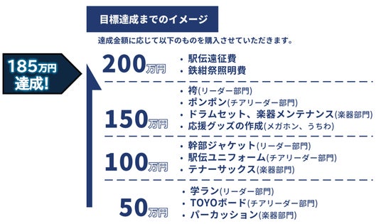 東洋大学應援指導部、クラウドファンディング「全力のエールに全力の応援をください!」、目標達成率185%にて終了!