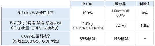 ※:「SuMPO EPD(旧名称:エコリーフ)」は、一般財団法人サステナブル経営推進機構が運営するLCA(ライフサイクルアセスメント)手法を用いて製品のライフサイクル全体(原料調達から廃棄・リサイクルまで)にわたる環境負荷情報を定量的に開示する環境ラベルです。「Re・AL」はこの第三者検証を取得しています。(https://ecoleaf-label.jp/epd/2271)