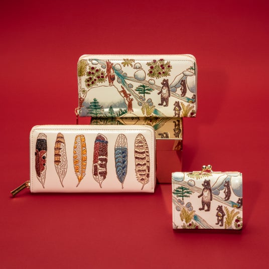 大関の文庫革 × CORAL & TUSK姫路の伝統工芸・文庫革を製作する「文庫屋大関」と、ニューヨーク発ファブリックブランド「CORAL & TUSK(コーラル&タスク)」による初のコラボレーションが実現。職人たちが牛革に型押しした線の上に1点ずつ手描きで彩色し、CORAL & TUSKの心温まる刺繍の世界を表現しています。