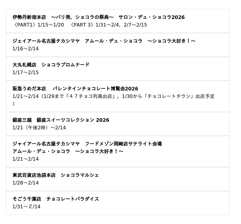 1月16日からは全国の百貨店で開催されるバレンタイン催事にも出店。