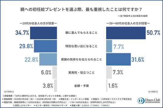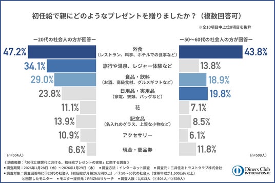ダイナースクラブカードを発行する三井住友トラストクラブ株式会社(代表取締役社長:五十嵐幸司、以下当社)は、20代とその親世代を対象(調査概要参照)に「初任給プレゼントの実態」に関する調査を実施しました。