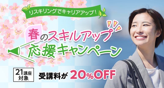 21講座対象20%OFF「春のスキルアップ応援キャンペーン」4月1日(水)~5月19日(火)に開催!