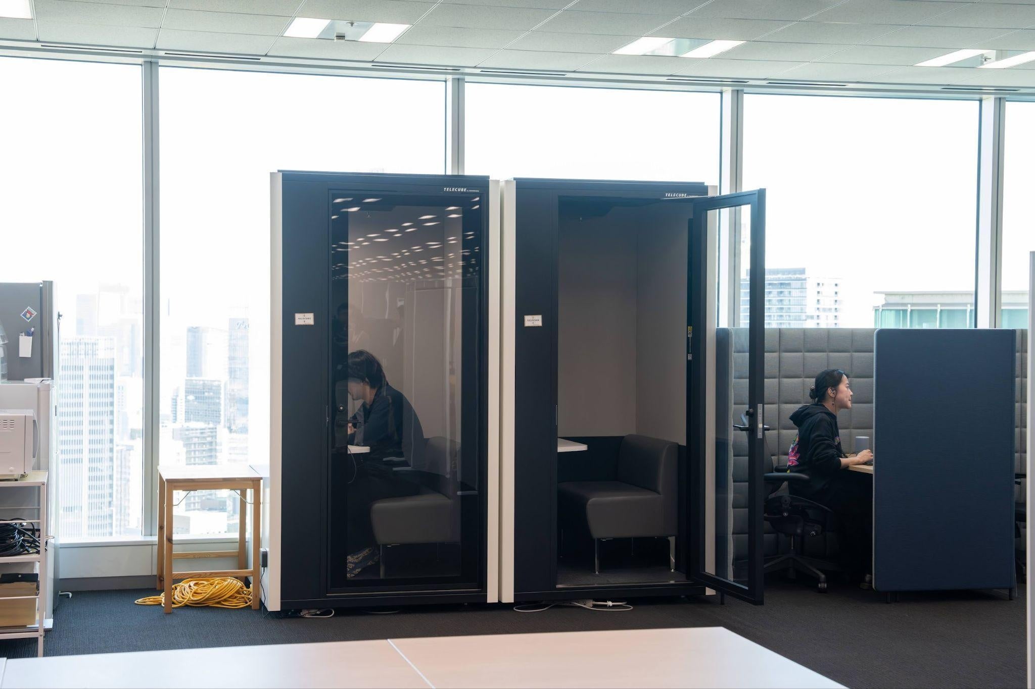 同社では、ワークスタイルポリシーとしてハイブリットワークを導入していますが、オフィス出社頻度の増加にともない、セキュアなミーティング環境の構築およびオフィスの利便性向上を目的として、テレキューブを導入しました。